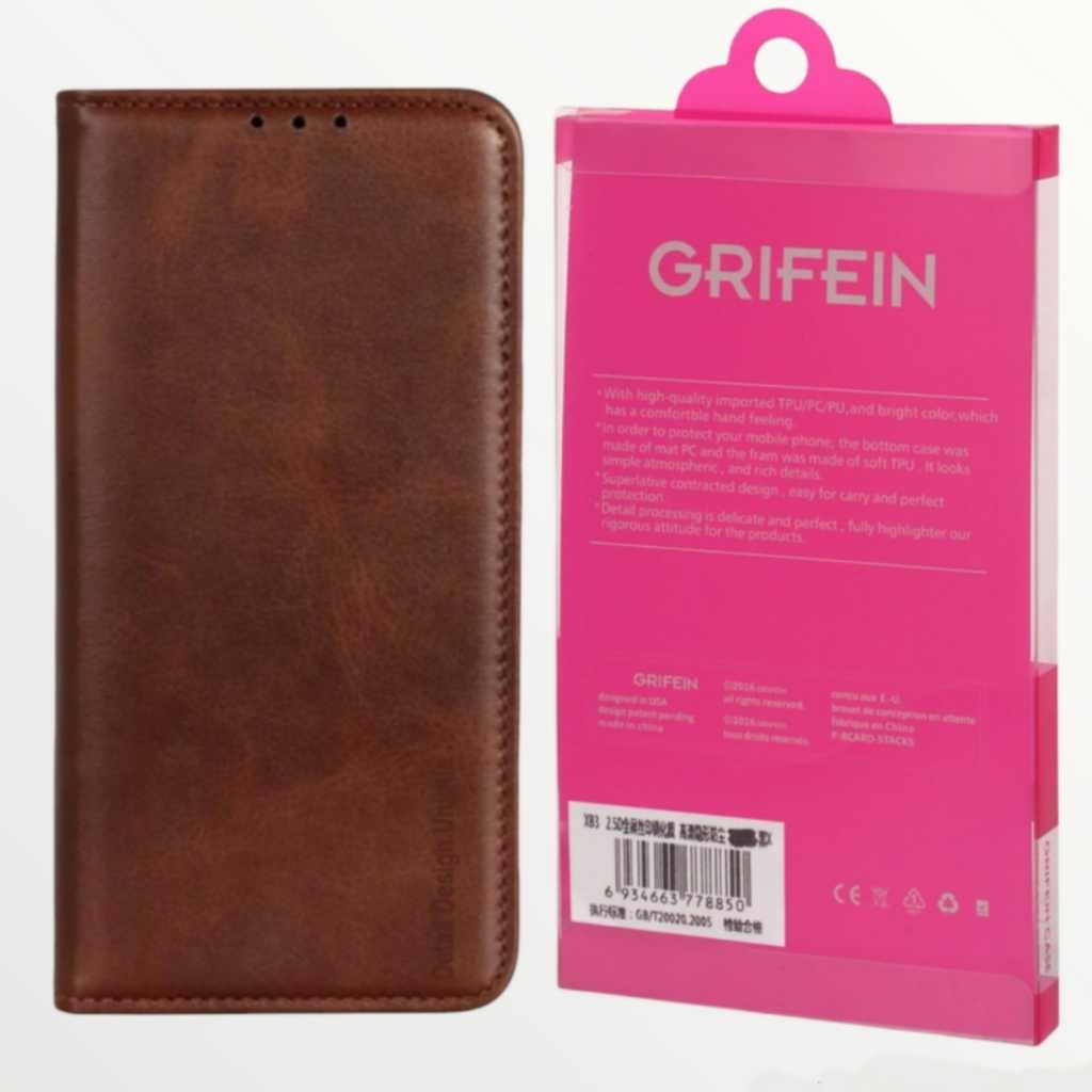 کیف چرمی گریفین، کیف محافظی شیک و با اصالت، که از چرم ساخته شده است.این کیف چرمی، گوشی شما را به طور کامل با پوشش نرم و ظریفی می‌پوشاند. کاوری که روی نمایشگر را می‌پوشاند جنس نرمی دارد و مانع از خط و خش روی نمایشگر گوشی می‌شود اما بدنه اصلی کیف که گوشی را دربر می‌گیرد از جنس پلاستیک نرم طراحی و تولید شده است. در نتیجه مانع از آسیب دیدن گوشی در برابر ضربه، سقوط و سایر آسیب‌ های مشابه می‌شود. پوشش پشت بدنه در قسمتی که اطراف لنز دوربین را می‌پوشاند کمی ضخیم‌تر است.این ضخامت باعث می‌شود لنز دوربین از اطراف کاملا احاطه شده و به خوبی محافظت شود. داخل درب کاور اسلاتی برای جای کارت تعبیه شده است. بنابراین کاربران می‌توانند کارت‌ هایی که هر روز از آن‌ ها استفاده می‌کنند نظیر کارت مترو یا کارت بانک روزانه در این قسمت قرار دهند تا همیشه در دسترسشان باشد. به دلیل طراحی استاندارد کیف محل قرارگیری کلیدها، پورت‌ ها و دوربین با شیارهای دقیقی کاملا باز است و کاربران برای دسترسی به این امکانات مشکلی نخواهند داشت. همچنین، طراحی باریک کیف حجم محسوسی به گوشی اضافه نخواهد کرد. طراحی منحصر به فرد، محافظت از صفحه نمایش، نمای زیبای آن در پایین کاور همگی گویای کالایی با کیفیت و مرغوب است. با توجه به اندازه استاندارد این کیف محافظ مزاحمتی برای استفاده از پورت‌ ها و کلیدها وجود نخواهد داشت.